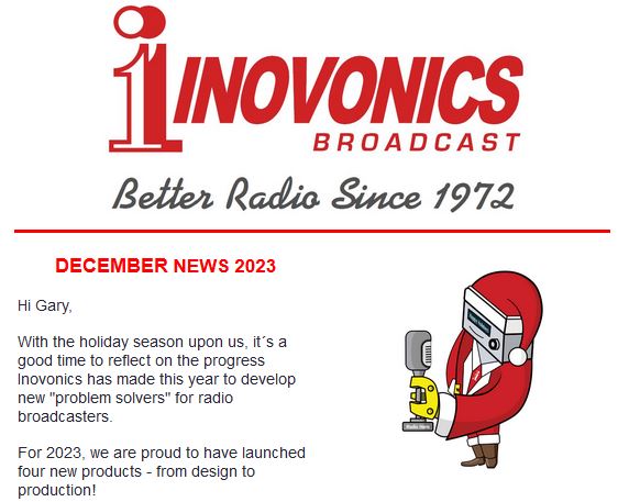 With the holiday season upon us, it´s a good time to reflect on the progress Inovonics has made this year to develop new “problem solvers” for radio broadcasters.