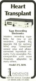 The Inovonics 375 is a compact, up-to-date magnetic recording electronics package, completely self-contained with integral power supply.