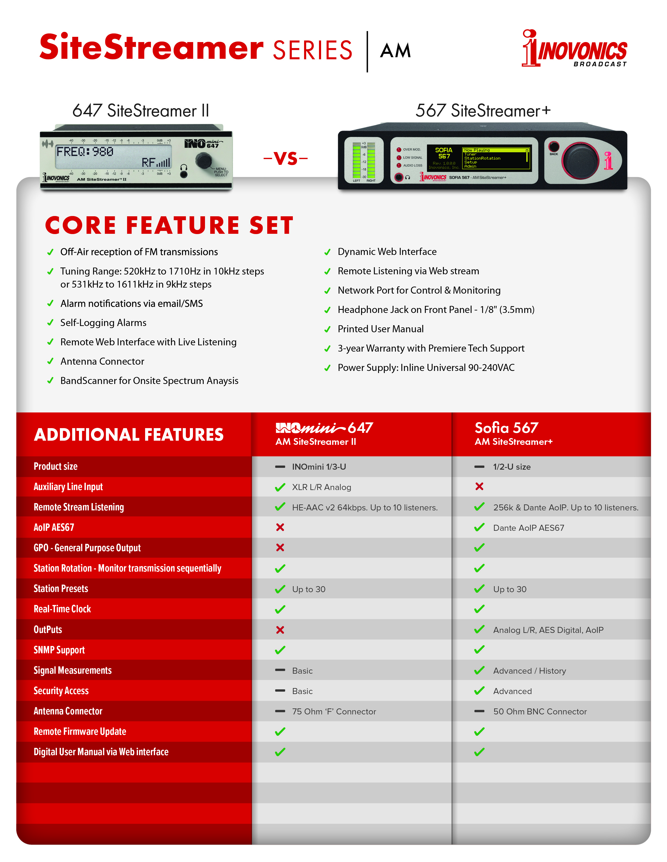 Multiple stations can be sequentially monitored using the programmable StationRotation™ feature. The SOFIA 567 includes a built-in BandScanner™, a real-time clock and full SNMP functionality.